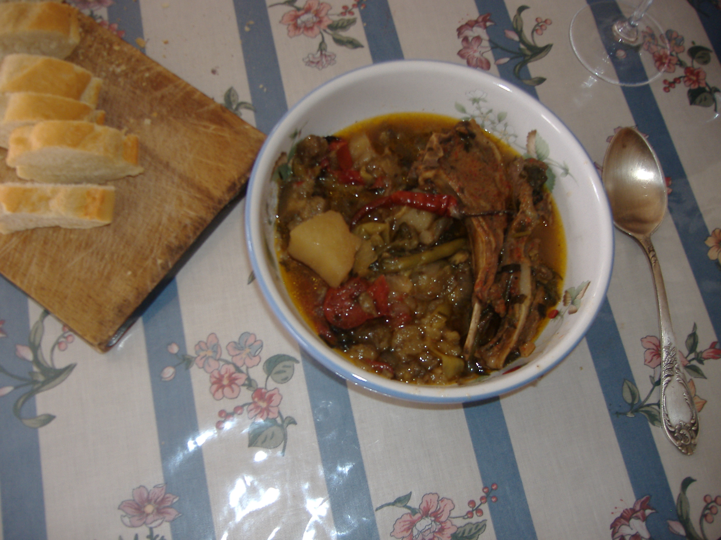 Kars Posted June 20, 2009 Report Share Posted June 20, 2009 Нет, как не крутите но мясо сегодня не будет! Вот, еще один "не ужин" )) Айлазан Что нужно: # баклажаны и картофель - по 4 шт. # лук репчатый - 1 шт. # сладкий перец - 1 шт. # фасоль стручковая - 1/2 стакана # помидоры - 2 шт. # растительное масло - 4 ст. ложки # чеснок - 3 зубчика # зелень базилика, чабреца, кинзы и петрушки - 1/2 стакана # перец черный молотый - 1 щепотка # соль по вкусу Как приготовить "Айлазан": 1. Баклажаны очистить от кожицы, нарезать кружочками, посолить, оставить на 10–15 минут для удаления горечи, затем отжать. Стручки фасоли промыть, очистить от боковых жилок. Картофель нарезать кубиками, лук—полукольцами, сладкий перец — соломкой, помидоры —кружками. 2. Подготовленные овощи положить в кастрюлю слоями в 1–2 см, добавить масло. Повторять слои, пересыпая их пряной зеленью, перцем и солью, пока не уложатся все овощи. 3. Тушить с добавлением небольшого количества воды до готовности на слабом огне, при закрытой крышке. 4. За 5–7 минут до готовности добавить измельченный чеснок. Приятного аппетита! P.S. А то заладили понимаешь "голодный как волк мужчина", "это не ужин", "потом сделаю", надо было открытым текстом сказать, что хочется отведать че-нить мясного...)) Неплохо. По-моему, уже меню на сегодня готово. А скажи, Луи, что будет, если я парочку кусочков баранины добавлю в "Айлазан"? Как говорится, «кашей масло не испортишь», или наоборот. Ну а так - мое сегодняшнее меню готово. Жду пару ответов от Терезы и от Луи - и бегу в магазин закупать продукты. Еще один вопрос Луи - от коварного дашнака: как переводится на армянский или на какой-нибудь другой нормальный язык "чабрец"? Понятия не имею, что это такое, а в магазине все только по-армянски говорят. Большое дашнакское спасибо, Louis ջան По-моему, меню моего ужина готово, благодаря вам. Ответьте, пожалуйста на оставшиеся вопросы - и я побежал. Quote Link to post Share on other sites