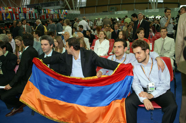 Egern.net Posted June 5, 2006 Report Share Posted June 5, 2006 Շնորհավորում եմ բոլորիս այս փայլուն հաղթանակի կապակցությամբ: Մենք, իրոք, ամենաուժեղն ենք: Մեր հարևանների բերանը երկար ժամանակով փակվեց... Այսօր շատ հետաքրքիր ստացվեց ինձ համար: Խաղերը ինչ-որ անսովոր շուտ ավարտվեցին (մերոնք դե գիտեին, որ ոչ-ոքին արդեն ոսկի է): Ինչպես երևի գիտեք, առաջնության խաղերը կարելի էր դիտել օլիմպիադայի պաշտոնական կայքում: Ես չէի հասկանում ինչու, բայց չէի կարողանում նայել: Ես ունեի Java Runtime Environment, որով հաջողությամբ հետևել էի Լինարեսի, Մոնակոյի և այլ խաղերին: Այսօր առավոտյան, պատահաբար, ընկերոջս տանը մտա օլիմպիադայի կայքը և տեսա, որ երեկա խաղերը կան: Պարզվեց, որ նայելու համար պետք էր Microsoft Virtual Machine 5-ը: Ընկերս դա ուներ CDի վրա և տվեց ինձ: Եկա տուն, ժամը 1-ն էր: Հաց կերա և այլն, 1:45 որոշեցի նայեմ, թե ինչպես են ընթանում խաղերը: Install արեցի MsVM-ը, մտա ինտերնետ, տեսնեմ` հաշիվը` 2-2: Մտածեցի, որ սխալմամբ երեկվա հաշիվն են դրել, բայց հետո խաղատախտակներին նայեցի ու պարզ դարձավ, որ մեկը 7, մյուսը 10, մեկ ուրիշը 15 քայլից համաձայնվել են ոչ-ոքիի: Հետո մի տեղ գտա 12-րդ տուրի մրցաշարային աղյուսակը ու հասկացա, թե ինչու էին այդքան շուտ վերջացրել... Ամեն դեպքում, բոլորս գոհ ենք մերոնցից ու հպարտ: Ներկայացնում եմ մրցաշարային աղյուսակը. Rk. SNo Team Games + = - TB1 TB2 TB3 1 3 Armenia 13 10 3 0 36 397 23 2 12 China 13 8 1 4 34 393 17 3 7 USA 13 9 3 1 33 392.5 21 4 6 Israel 13 9 3 1 33 380.5 21 5 16 Hungary 13 7 4 2 32.5 386.5 18 6 1 Russia 13 7 2 4 32 410.5 16 7 5 France 13 7 5 1 32 396 19 8 4 Ukraine 13 8 2 3 32 390.5 18 9 10 Bulgaria 13 7 2 4 32 385 16 10 11 Spain 13 7 4 2 32 377.5 18 11 20 Czech 13 7 4 2 31 399 18 12 8 Holland 13 8 1 4 31 396 17 13 30 Uzbekistan 13 6 4 3 31 389.5 16 14 17 Georgia 13 9 2 2 31 388 20 15 14 Germany 13 7 0 6 31 381 14 16 18 Cuba 13 7 3 3 30.5 386 17 17 31 Sweden 13 6 4 3 30.5 381 16 18 23 Moldova 13 7 1 5 30.5 376.5 15 19 13 England 13 8 2 3 30.5 366 18 20 25 Denmark 13 8 2 3 30 396 18 21 21 Poland 13 7 1 5 30 381 15 22 22 Greece 13 7 2 4 30 379 16 23 32 Slovenia 13 8 2 3 30 378.5 18 24 9 Azerbaijan 13 7 2 4 30 377.5 16 25 28 Croatia 13 6 3 4 30 373.5 15 Quote Link to post Share on other sites
