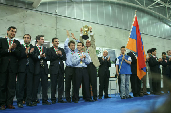 Ессентуки Posted June 5, 2006 Report Share Posted June 5, 2006 АРМЯНСКИЕ ШАХМАТИСТЫ - СИЛЬНЕЙШИЕ В МИРЕ [14:00] 05 Июня, 2006 4 июня мужская сборная Армении впервые стала победителем на 37-ой шахматной Олимпиаде в Турине. В последнем 13-ом туре армянская команда сыграла вничью с венграми (2:2) и с результатом 36 очков стала победителем олимпиады. Напомним, что в конанде Армении выступали Левон Аронян, Владимир Акопян, Карен Асрян и Габриэл Саркисян. Напомним результаты нашей команды на протяжении всего турнира: 1.Армения – Венесуелла (3 - 1) 2.Нигерия – Армения (0.5 - 3.5) 3. Армения – Дания (3 - 1) 4. Армения – Норвегия (4 - 0) 5. Россия – Армения (2 - 2) 6. Армения – Узбекистан (2.5 - 1.5) 7. Голландия – Армения (1 - 3) 8. Куба – Армения (1 - 3) 9. Украина – Армения (1.5 - 2.5) 10. Армения – Япония (2.5 - 1.5) (!!!) 11. Армения – Чехия (3 -1) 12. Франция – Армения (2 - 2) 13. Армения – Венгрия (2 - 2) A1plus Quote Link to post Share on other sites
