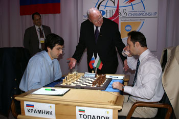 Amaras Posted October 13, 2006 Report Share Posted October 13, 2006 Топалов сравнял счет на тай-брейке В третьей партии тай-брейка матча за звание чемпиона мира по шахматам между россиянином Владимиром Крамником и болгарином Веселином Топаловым соперники продолжили свой спор в Славянской защите. В миттельшпиле игравший белыми Топалов получил сильную атаку на черного короля, и на 50-м ходу Крамник признал свое поражение. Таким образом, счет на тай-брейке стал равным. В четвертой партии белые фигуры будут у Крамника. Если она завершится вничью, будут назначены две блиц-партии. Quote Link to post Share on other sites